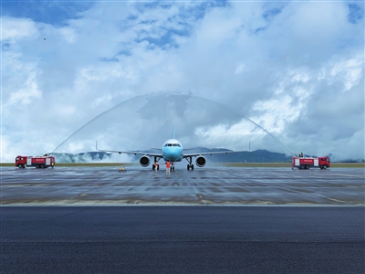 據(jù)介紹,本次航班由浙江長龍航空公司空客320飛機執(zhí)飛,航班號為GJ8560,承載旅客130名。記者在現(xiàn)場看到,航班落地后,所有的設(shè)施設(shè)備和人員均已就位,安檢護衛(wèi)、地面服務(wù)各運行保障工作崗位有條不紊地開展工作。