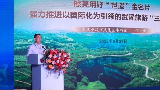 在本次會(huì)議上,武隆區(qū)委書記何慶作了主題為《擦亮用好“世遺”金名片 強(qiáng)力推進(jìn)以國(guó)際化為引領(lǐng)的武隆旅游“三次創(chuàng)業(yè)”》的專題報(bào)告。報(bào)告中,一組組數(shù)據(jù)、一個(gè)個(gè)案例,彰顯著武隆旅游高質(zhì)量發(fā)展取得的成果,以及武隆旅游開啟“三次創(chuàng)業(yè)”的豪邁步伐。