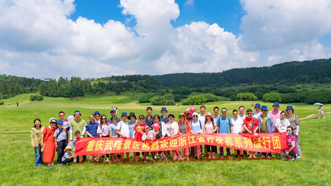 7月5日,浙江省首個(gè)療休養(yǎng)團(tuán)隊(duì)游武隆活動(dòng)正式啟動(dòng),來自浙江捷程公司的首發(fā)團(tuán)順利到達(dá)武隆,開啟了世界自然遺產(chǎn)之旅,首發(fā)團(tuán)主要游覽仙女山、天生三橋、龍水峽地縫等景區(qū)。