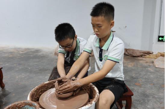 為增強(qiáng)孩子們的動(dòng)手能力,第二天上午,孩子們來到白馬山陶藝制作中心,進(jìn)行陶藝制作體驗(yàn)。“不同時(shí)代的器物,代表著不同的歷史文化!”在制作之前,帶隊(duì)老師寓教于樂,向孩子們普及陶藝知識(shí)。觀察陶土的屬性,了解技藝要點(diǎn),感受陶土與瓷土的區(qū)別,孩子們表示在興趣盎然中受益匪淺!