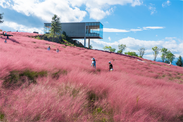 10月3日,走進(jìn)懶壩景區(qū),上百畝粉黛亂子草競(jìng)相開(kāi)放。陽(yáng)光照射下,成片的粉黛亂子草連成一片片“花海”,伴著微風(fēng)隨風(fēng)搖曳,柔軟而輕盈,呈現(xiàn)出粉色云霧狀夢(mèng)幻效果。如此仙氣十足的美景,給景區(qū)帶來(lái)了幾分少女般的浪漫。不少來(lái)此游玩的市民,紛紛駐足觀賞拿起手機(jī)拍照打卡。