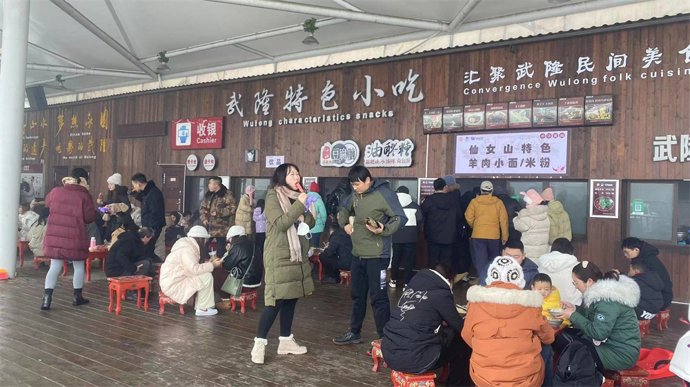 滑雪賞雪、美食美景一個(gè)都不能少,在仙女山戶外滑雪場(chǎng)美食區(qū)同樣人氣爆棚,羊肉粉、重慶小面、特色燒烤等美味小吃匯聚,暢玩滑雪玩雪后吃點(diǎn)特色美食,暖心又暖胃。