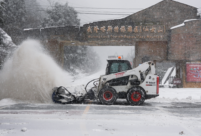 特別是多日的降雪為景區(qū)交通增添不少壓力,“每天我們都出動掃雪車11臺,灑鹽車4臺,備鹽200余噸,同時還安排了200名員工待命除雪!”仙女山景區(qū)工作人員表示。
