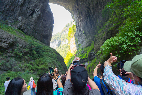 3月10日,武隆景區(qū)來了一批很“特殊”的游客,來自四川外國語大學(xué)的30余名留學(xué)生組成考察團,在觀看了大型實景演出《印象武隆》后,游覽了天生三橋景區(qū),雄渾壯觀的世界自然遺產(chǎn)風(fēng)光,引得留學(xué)生們贊嘆不已,紛紛通過各種社交軟件分享出去。