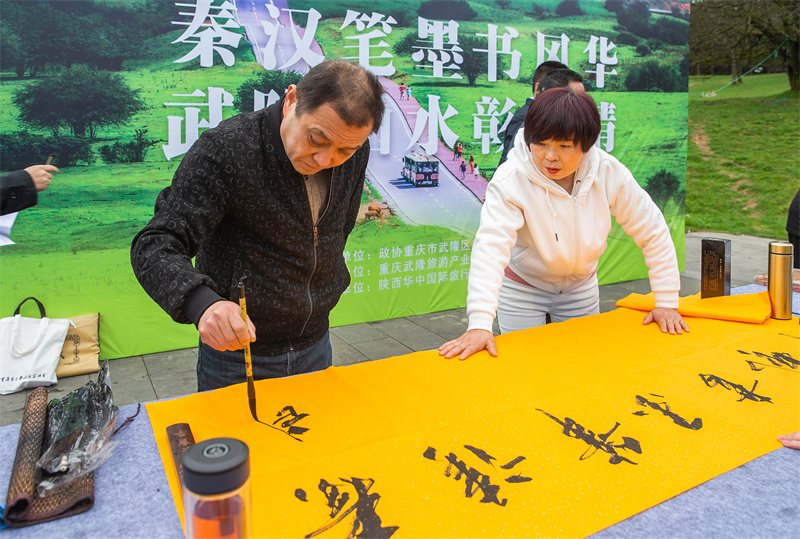 4月7日,以“秦漢筆墨書風(fēng)華·武隆山水彰才情”為主題的書畫旅游活動(dòng)在仙女山大草原舉行,來自陜西、重慶兩地的100余名書畫愛好者以山水為景、書畫為媒,為游客帶來了一場(chǎng)高雅的文化大餐和視覺盛宴。