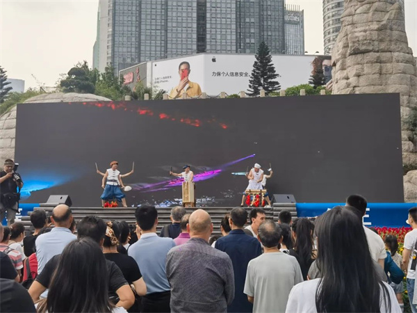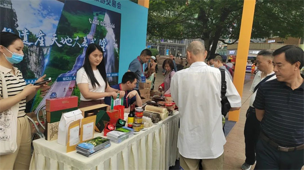活動現(xiàn)場具有武隆地標(biāo)的非遺節(jié)目《抬石號子》、《麻辣火鍋》和文創(chuàng)產(chǎn)品以及農(nóng)副產(chǎn)品亮相展會現(xiàn)場,吸引眾多市民駐足觀看。
