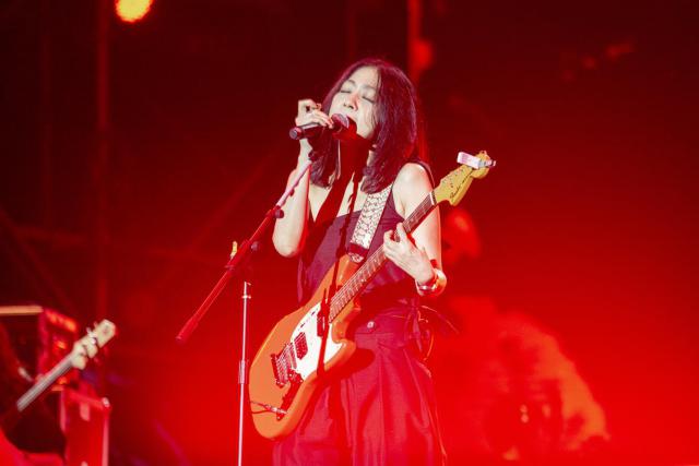 晚上7點20分,詹雯婷以一身黑色連體褲和白色外套閃耀出場,一出場便以一首傳唱度極高的《融雪》引爆全場?!斗亠L》《河畔》《預言石》詹雯婷不停歇,一連帶來了多首經(jīng)典歌曲。特別是《決愛》、《蒼穹》、《我們的愛》、《Lydia》一首首耳熟能詳?shù)母枨?,被詹雯婷空靈的聲音而又極具爆發(fā)力的聲線演繹得淋漓盡致,在舞臺上詹雯婷聲息氣場全開,為觀眾帶去了一場極致視聽享受。《我們的愛》更是引發(fā)全場觀眾大合唱,現(xiàn)場歌迷們吶喊尖叫聲不斷!
