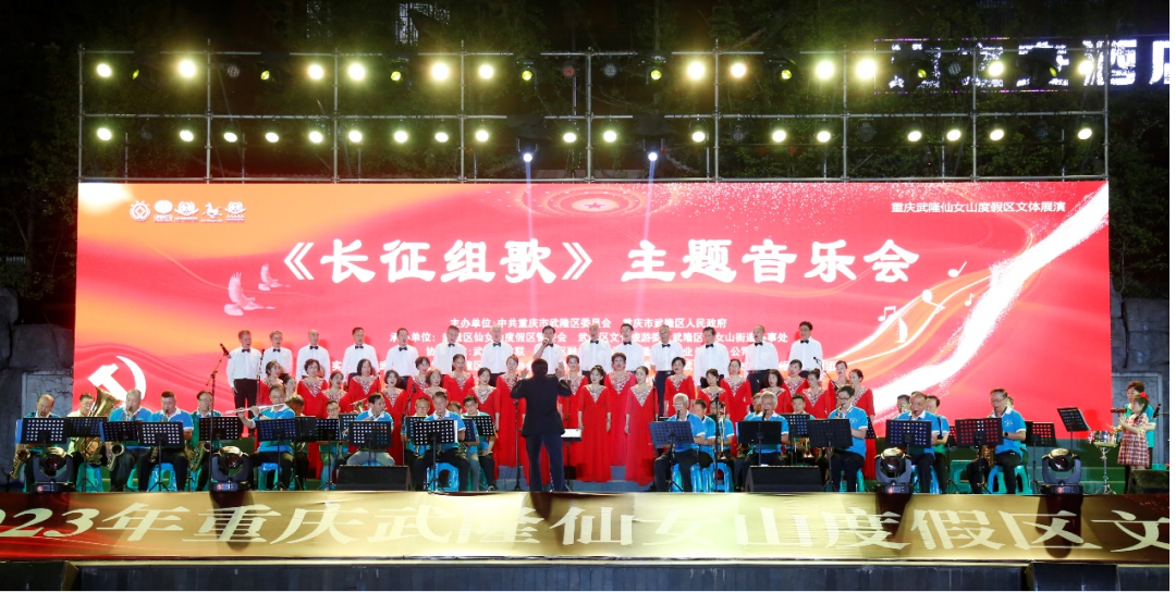 一首首紅軍曲、一幅幅長征景…在中國共產黨建黨102周年之際,為銘記紅色歷史,弘揚長征精神,武隆區(qū)慶祝建黨102周年《長征組歌》主題音樂會于8月11日晚在仙女山街道仙女廣場激情奏響。