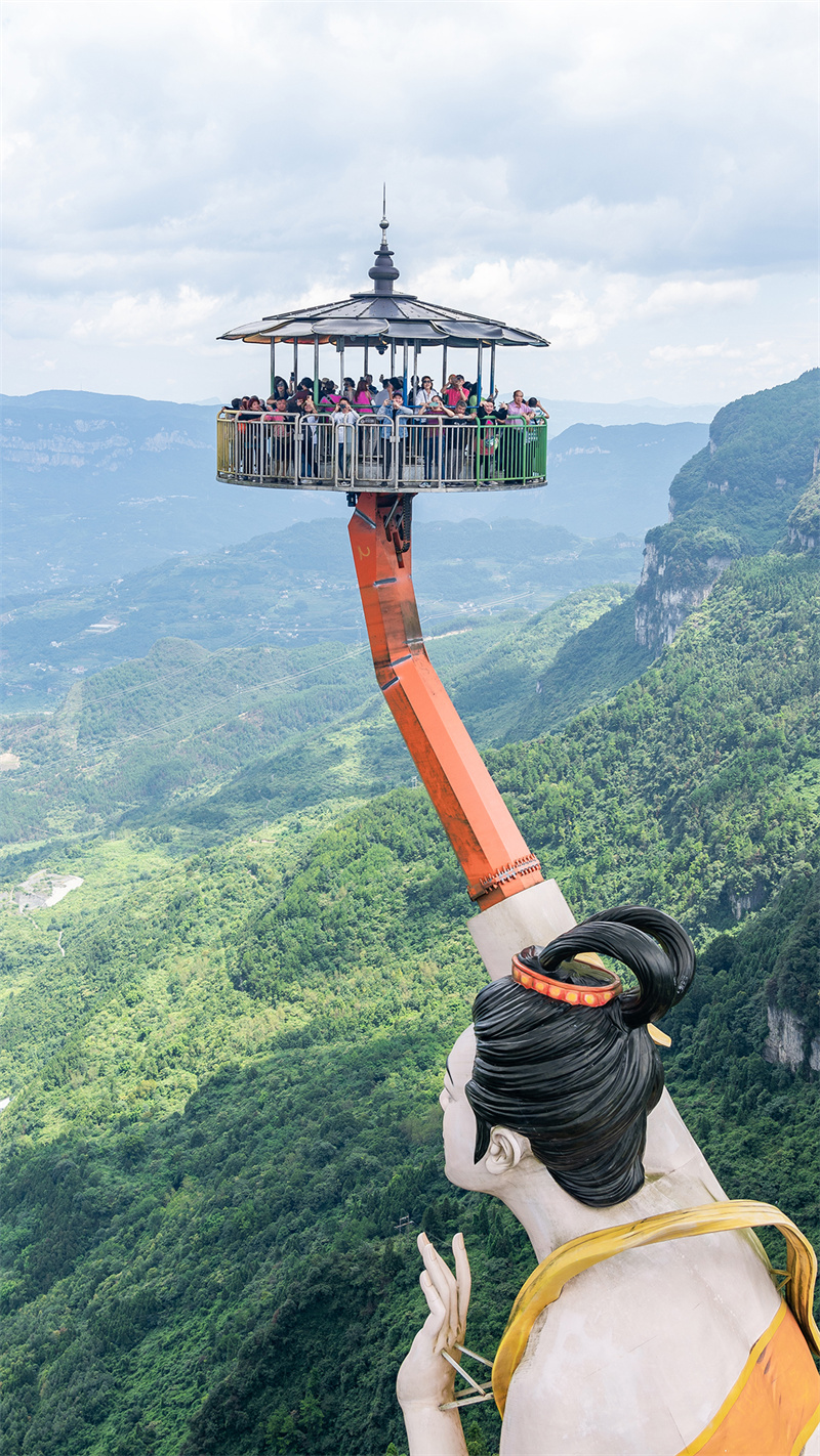“站在飛天之吻上面,俯瞰下面的風(fēng)景非常漂亮!重慶武隆之行太值了”印尼游客林海強(qiáng)欣喜的表示。站在由仙女、王子托舉著的小亭里,游客們不停拍照留影、尖叫吶喊,印尼游客紛紛點(diǎn)贊白馬山之美。
