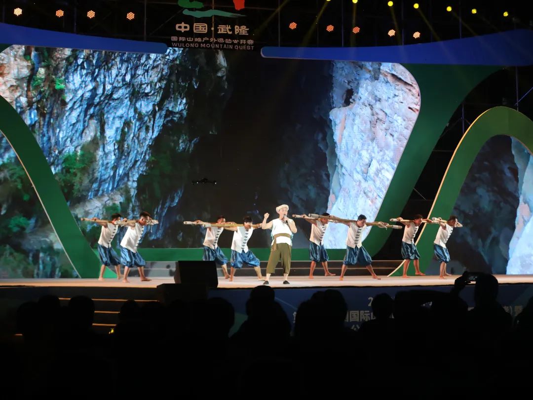 本次慶典活動清晰地展現(xiàn)出公開賽從無到有,從小到大的堅實步履?,F(xiàn)場發(fā)布了公開賽吉祥物“隆隆”“欣欣”——兩只以瀕危國家一級保護動物“黑葉猴”為原型創(chuàng)作的卡通形象,并向為推動公開賽發(fā)展作出杰出貢獻的10家企業(yè)和24名運動員、裁判員、先進個人分別頒發(fā)特殊貢獻獎和榮耀之星獎?!段渎g迎你》《抬石號子》等具有武隆特色文化符號的文藝表演,搭配上具有運動美感的極限表演秀《奔向未來》,為嘉賓、運動員和現(xiàn)場觀眾帶來了一場精彩的“文藝大餐”。而在慶典當(dāng)晚作為壓軸節(jié)目登場的深度融合武隆元素的無人機表演,更是在武隆如畫山水間上演了科技與運動交融的視覺盛宴,深刻彰顯了“世界自然遺產(chǎn) 天地大美武隆”的獨特魅力,將整個活動現(xiàn)場氣氛推向最高潮。
