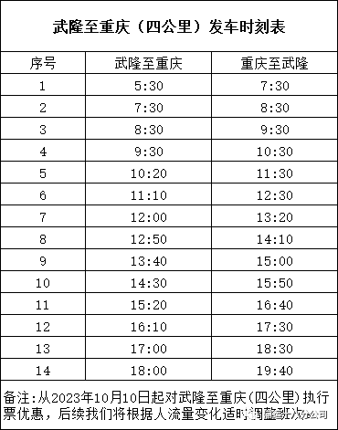 對武隆至重慶(重慶至武隆)班車均實行浮動票價