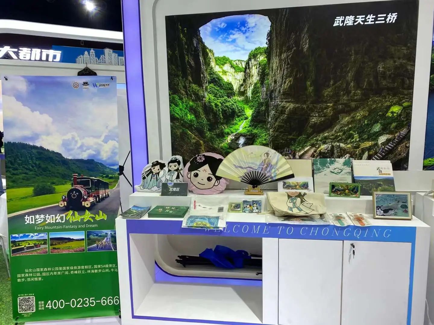 活動現(xiàn)場,武隆手工折扇,手提袋等文創(chuàng)產(chǎn)品精彩亮相,并積極開展旅游線路推介宣傳。