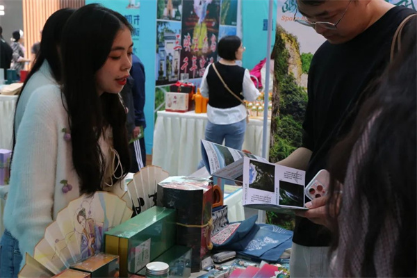 我委組織區(qū)旅游產(chǎn)業(yè)(集團)公司參展。展會現(xiàn)場,武隆旅游精美畫冊、“興興隆隆”玩偶、仙女紅茶葉以及眾多精美的文創(chuàng)產(chǎn)品深受市民和游客青睞。