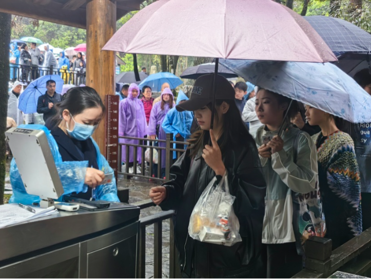 游客朋友們有序排隊(duì)檢票入園