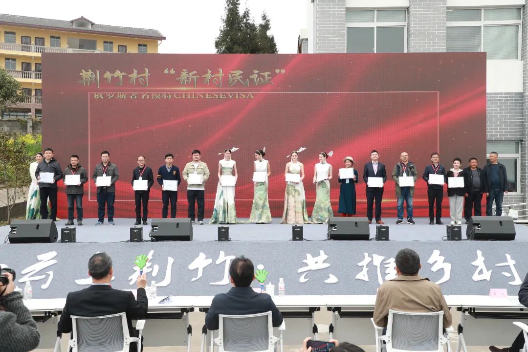 鄉(xiāng)村要振興,人才是關(guān)鍵。在本次“四民”工程建設(shè)大會(huì)上,荊竹村還為部分“新村民、榮譽(yù)村民”頒授了證書,廣泛吸納荊竹村內(nèi)、村外、全國乃至境外的各類人才,參與荊竹村鄉(xiāng)村振興建設(shè)。