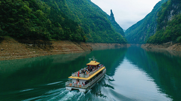 趣味活動,樂享不停。芙蓉仙女多才多藝,隨著古典音樂翩翩起舞,優(yōu)美的舞姿、飄逸的衣裙,宛若水上精靈;伴著悠揚(yáng)的古箏,仙女們款款走來,形式各樣、色彩豐富的衣裙隨風(fēng)飄舞,漢服T臺秀韻味十足;踢毽、投壺、套圈……歡樂無窮,引得圍觀游客紛紛參與;坐在甲板上,迎著春風(fēng),在青山綠水間品茗賞景,怡然自得;站立船頭拍照打卡,留下與“人間仙境”的珍貴合影。