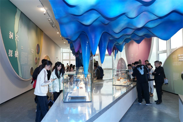 在到達仙女山之前,千名學子來到重慶首個以喀斯特地質奇觀為模板打造的博物館,上萬件展示地球億萬年跌宕起伏的珍稀展品,形態(tài)各異的洞穴資源奇觀,奇妙的喀斯特秘境,以噸計重的奇石殿堂等等,使大家對武隆喀斯特地質奇觀深感震撼。