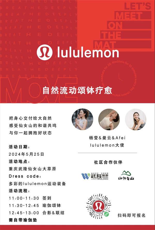 在這個繁忙的都市生活中,每個人都渴望找到一片屬于自己的寧靜之地。5月25日,仙女山將變身瑜伽愛好者的天堂!200名瑜伽達(dá)人將與頂流運(yùn)動品牌lululemon攜手,在仙女山這片天然氧吧中,開啟一場別開生面的自然運(yùn)動之旅。這不僅是一次身心的放松,更是一次與大自然親密接觸的絕佳機(jī)會。