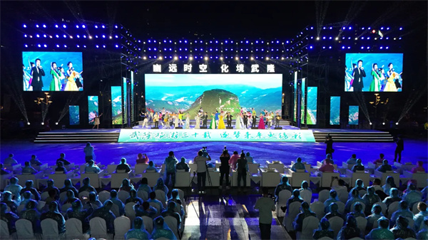 趙明全在致辭中表示,近年來(lái),重慶全面推進(jìn)文化和旅游深度融合,深入推動(dòng)巴蜀文化旅游走廊建設(shè),加快建設(shè)文化強(qiáng)市和世界知名旅游目的地。過(guò)去30年,武隆歷屆黨委政府團(tuán)結(jié)帶領(lǐng)干部群眾,始終將旅游業(yè)作為第一支柱產(chǎn)業(yè),旅游品質(zhì)大幅提升,產(chǎn)品體系日臻完善,品牌影響力持續(xù)增強(qiáng),推動(dòng)武隆成為全國(guó)重要旅游目的地。武隆區(qū)一張藍(lán)圖繪到底、一屆接著一屆干、一心一意抓旅游,既是對(duì)習(xí)近平總書(shū)記重要講話(huà)重要指示精神的貫徹落實(shí),又是著力完善現(xiàn)代旅游業(yè)體系的生動(dòng)實(shí)踐,相信在“第三次創(chuàng)業(yè)”的持續(xù)加力下,武隆旅游將快步走向更美好的明天。市文化旅游委將一如既往,大力支持武隆區(qū)做精旅游產(chǎn)品,做大市場(chǎng)規(guī)模,加強(qiáng)品牌營(yíng)銷(xiāo),推動(dòng)武隆文化旅游高質(zhì)量發(fā)展。
