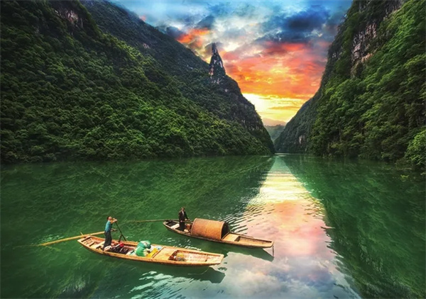 如詩如畫烏江畫廊。千里烏江,百里畫廊。山似斧劈、水如碧玉、虬枝盤旋、水鳥嬉翔。兩岸重巒疊嶂、絕壁高聳入云,灘峽櫛比,奇險(xiǎn)無窮,靈秀清淑,宜于仙矣!