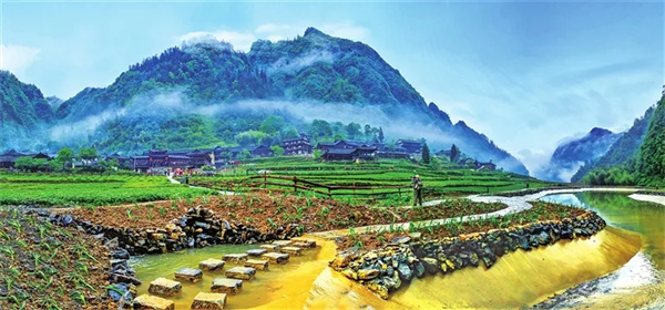 滄溝鄉(xiāng)大田古村落。大田古村落位于重慶市武隆區(qū)滄溝鄉(xiāng)大田村。建于明清時(shí)期,坐落在風(fēng)光秀麗的木棕河畔,民居大多為傳統(tǒng)木結(jié)構(gòu)。相傳,早期為黃氏先祖率兵鎮(zhèn)守于此,從此興建村落,繁衍生息,是古代官方信使從涪陵到彭水往來的必經(jīng)之所,2015年列入“中國傳統(tǒng)古村落”目錄。