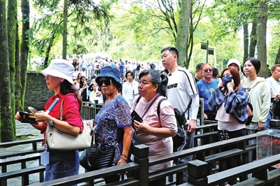 排隊(duì)有序進(jìn)景區(qū)。(張?jiān)傩?攝)