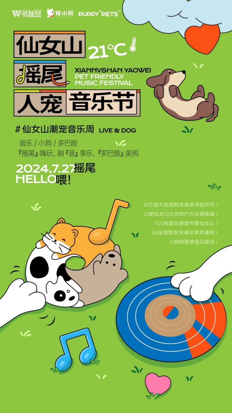 『搖尾』嗨玩、躺『音』享樂、『多巴胺』美照,寵物們終于可以擁有一場屬于自己的音樂節(jié)啦!7月27日,一場以萌寵、音樂、多巴胺、躺平為主題打造的寵物友好大型戶外草坪音樂節(jié)——“仙女山「搖尾」人寵音樂節(jié)”,將在仙女山國家森林公園隆重舉行。武隆景區(qū)現(xiàn)誠邀所有“鏟屎官”,一起來體驗仙女山潮寵音樂節(jié)的獨特魅力。