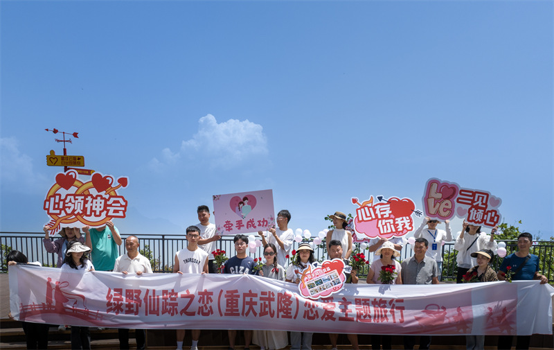 迢迢牽牛星,皎皎河漢女。又是一年七夕節(jié),良辰美景乞巧時。武隆以它獨(dú)有的山水靈韻,為在渝的單身青年們編織了一場夢幻般的愛情盛宴——「仙山為盟•白馬為誓」武隆旅游大型單身男女集體聯(lián)誼活動。2天1晚的戀愛主題旅行在美好愛情寓意之地的仙女山景區(qū)和白馬山景區(qū)浪漫落幕。懷揣著愛情夢想的上百名優(yōu)秀單身青年共赴浪漫之約,開啟了一場邂逅戀愛之旅。