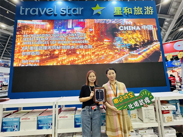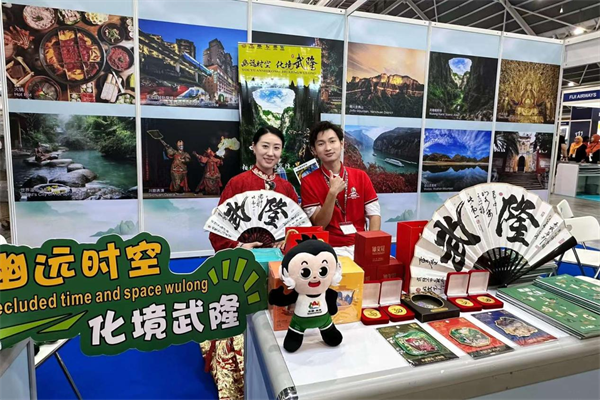 走進展會,中央大屏滾動播放的重慶文旅宣傳片源源不斷地將世界各地展商和觀眾引向中國展區(qū)。身著民族服飾的武隆旅游產(chǎn)業(yè)(集團)公司營銷總監(jiān)李安藝更是熱情洋溢,在其展臺向每一位感興趣的來賓闡述了仙女山、天生三橋等知名景點的獨特魅力,也向來賓們展示了武隆的民俗活動、非物質(zhì)文化遺產(chǎn)項目,以及為游客精心設(shè)計的旅游路線。
