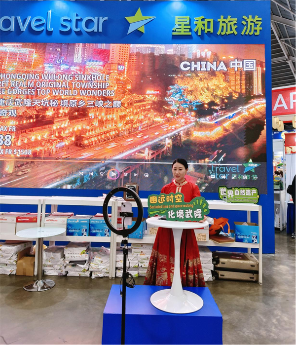 值得一提的是,本次展會特別開通新媒體直播間。通過 TikTok、Facebook 平臺,全球游客朋友足不出戶便能身臨其境地感受重慶武隆的旅游魅力,并直接購買旅游產(chǎn)品。