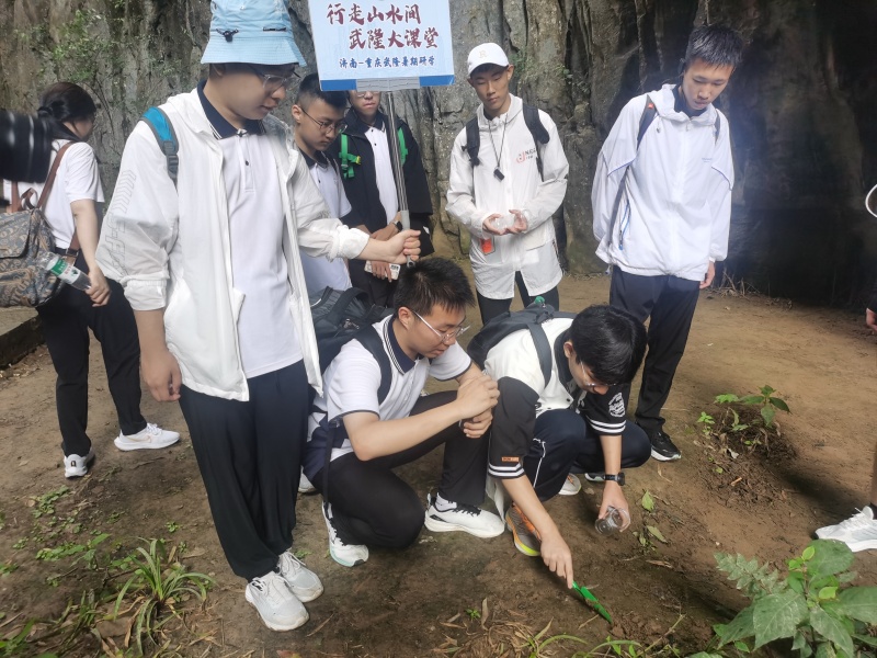 除了文化體驗,研學(xué)活動還注重生態(tài)教育。在仙女山森林科普教育基地和天生三橋地質(zhì)科普教育基地,同學(xué)們通過沉浸式的課堂體驗,深入理解了生態(tài)系統(tǒng)中各生物之間的相互依存關(guān)系,增強了環(huán)境保護意識。他們現(xiàn)場進行土質(zhì)檢測,帶回了土壤、水、巖石樣本,通過現(xiàn)場采樣實驗和繪制生物鏈思維導(dǎo)圖,學(xué)會了小組討論、協(xié)作共贏,懂得了自行發(fā)現(xiàn)問題、解決問題,分享展示實驗結(jié)果。