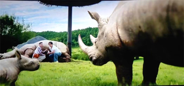 好不容易擺脫犯罪分子的追蹤,熊貓寶寶餓了,成龍大哥悄咪咪地靠近正在草原上喂奶的犀牛,抱開小犀牛,用奶瓶擠奶,但一會兒犀牛爸爸就來了,成龍大哥與犀牛在仙女山大草原“賽跑”最終逃跑成功。影片中,硬漢形象的成龍大哥與不太聰明的偷盜者斗智斗勇,笑料百出,一遇到“大萌主”呼呼秒變萌萌噠,令人忍俊不禁。