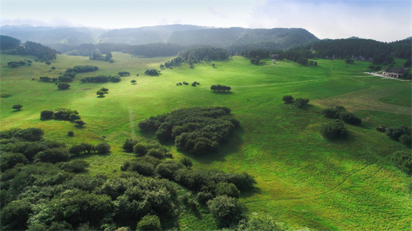在《熊貓計(jì)劃》的鏡頭下,仙女山大草原被賦予了新的生命。主角們目睹了熊貓、長頸鹿、斑馬、大象以及一些野生動物在“諾亞動物園”自由自在地生活,它們或悠閑漫步、或歡快嬉戲,共同構(gòu)成一幅和諧景象。這一場景的完美呈現(xiàn),主要得益于仙女山得天獨(dú)厚的自然條件。10萬畝的青青草原與30萬畝綠波浩渺的林海交相輝映,為電影提供了廣闊的拍攝空間。觀眾可以從電影鏡頭中隨心所欲地感受茫茫林海的浩瀚壯闊,領(lǐng)略綠草如茵的旖旎風(fēng)光,體會牛羊成群、駿馬飛騰的自由奔放,這些自然元素造就了電影中和諧共處、生機(jī)勃勃的場面。