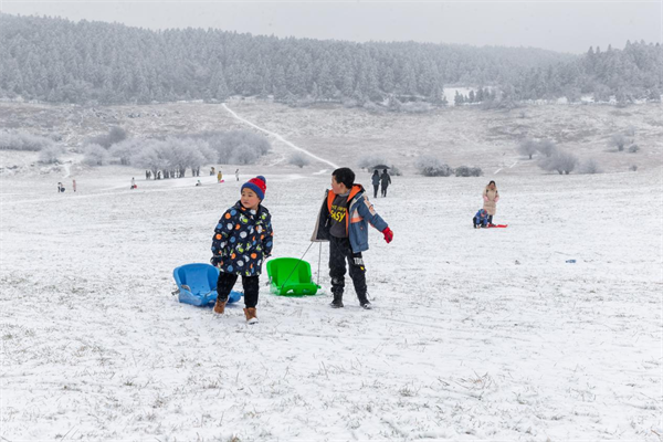 近日,仙女山景區(qū)迎來了今冬的首場瑞雪。紛紛揚揚的雪花如同一群群潔白的精靈,在山巒間翩翩起舞,將整個景區(qū)裝點成了一個銀裝素裹的童話世界,吸引了眾多游客前來觀賞游玩。