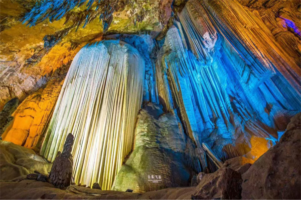 被譽(yù)為“地下藝術(shù)宮殿”“中國最美洞穴”的芙蓉洞更是美不勝收,也是國家5A級景區(qū)、世界自然遺產(chǎn)地、國家地質(zhì)公園。洞內(nèi)石筍林立、石幕低垂,形態(tài)各異且色彩斑斕。在燈光的照耀下,這些鐘乳石更顯得奇幻多姿,仿佛將您帶入了一個(gè)夢幻般的童話世界。