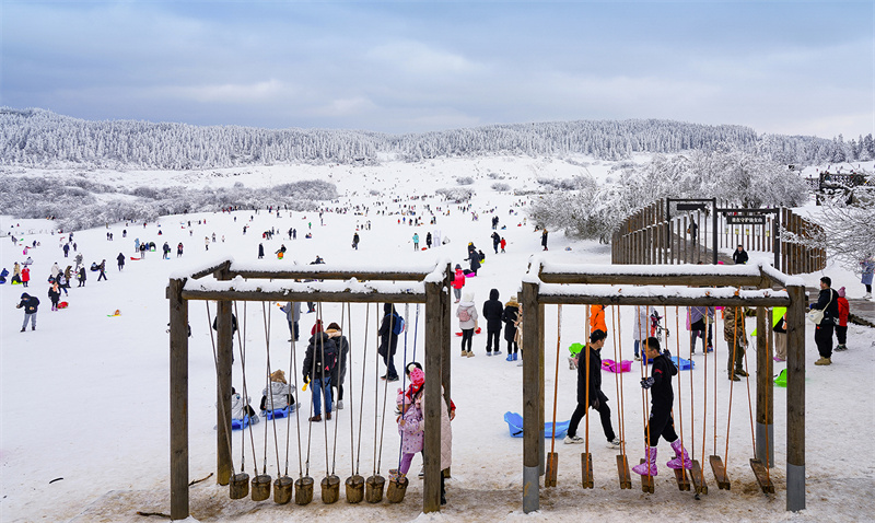到達(dá)仙女山后,眼前的美景更是讓人陶醉。那連綿不絕的山脈被厚厚的積雪覆蓋,山峰在陽(yáng)光的照耀下閃爍著銀光?;﹫?chǎng)里,人們穿著鮮艷的滑雪服,在雪地上飛馳而下,笑聲和歡呼聲在寒冷的空氣中回蕩。孩子們則在雪地里堆起一個(gè)個(gè)可愛(ài)的雪人,打著雪仗,他們紅撲撲的小臉上洋溢著純真的喜悅。