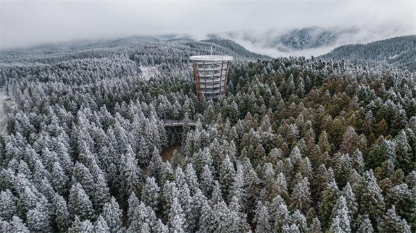 行走在仙女山樹頂漫步高空棧道上,仿佛穿梭云端;登上森林之眼俯瞰雪原,天地蒼茫盡收眼底,隨手一拍皆是大片。