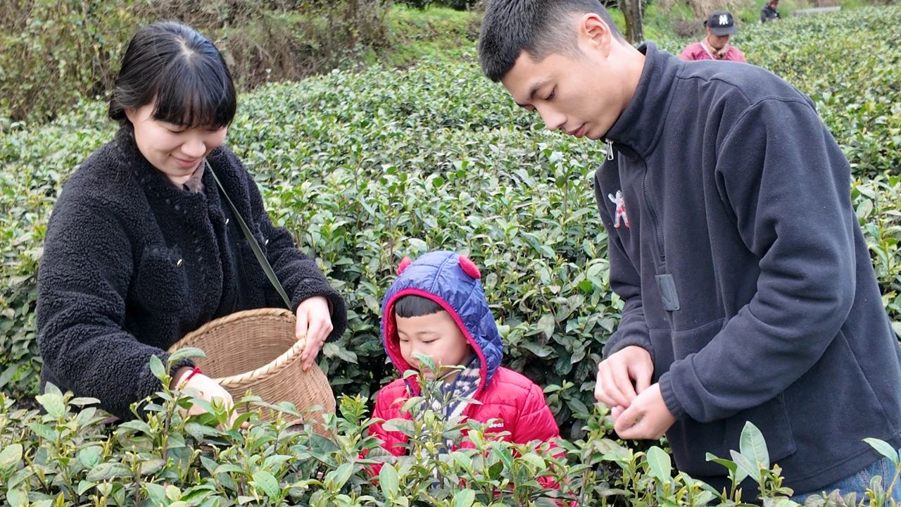 在海拔1300米的天尺坪茶場,游客張紅川帶著孩子徜徉在茶海中。“我們今天一早就來到白馬山采茶,主要是想讓孩子親近大自然,感受茶文化。”張紅川表示,茶山風(fēng)景美麗,孩子在這里不僅體驗(yàn)了采茶的樂趣,還了解了白馬手工茶傳統(tǒng)制作技藝,是一次非常有意義的旅行體驗(yàn)。