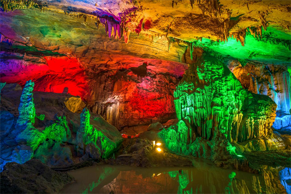 芙蓉洞,這座位于重慶市武隆區(qū)江口鎮(zhèn)的大型石灰?guī)r洞穴,形成于第四紀(jì)更新世,距今約120多萬年前 ,發(fā)育在古老的寒武系白云質(zhì)灰?guī)r中。洞內(nèi)鐘乳石類型豐富多樣,各類次生化學(xué)沉積巖形態(tài)琳瑯滿目,幾乎囊括了鐘乳石所有沉積類型,達(dá)30多種,構(gòu)成了目不暇接的奇幻景觀。