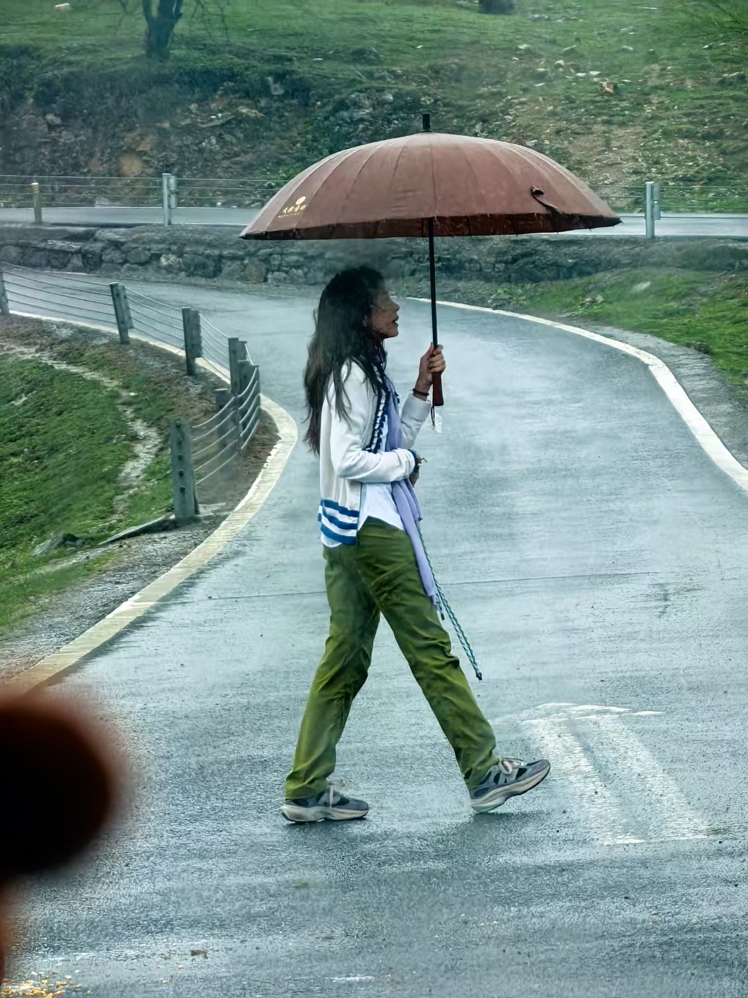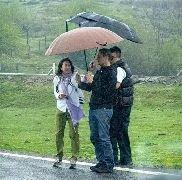 莫文蔚此次武隆之行,打扮得十分低調(diào)。她身穿白色T恤、軍綠色休閑褲,圍著紫色長(zhǎng)圍巾,留著披肩長(zhǎng)發(fā),戴著鴨舌帽,與外籍老公一同漫步在仙女山大草原的最美公路上。從跌宕起伏的山巒,到蒼翠欲滴的林海,再到延綿天際的大草原,處處被濃霧環(huán)繞,如詩(shī)如畫,宛如人間仙境。莫文蔚夫婦被這如夢(mèng)如幻的美景深深吸引,駐足觀賞,仿佛時(shí)間都為他們停留。