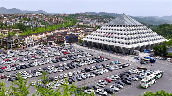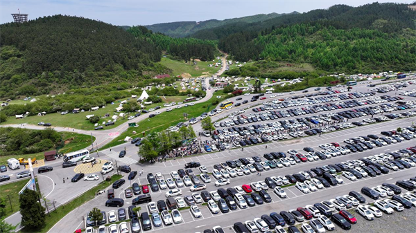 為應(yīng)對(duì)車輛增多的情況,景區(qū)設(shè)置多個(gè)臨時(shí)停車場(chǎng),提供充足車位,并通過(guò)合理規(guī)劃停車區(qū)域,盡管游客眾多,車流量激增,但車輛均有序進(jìn)入停車場(chǎng),整齊停放,井然有序,形成一道和諧美麗的風(fēng)景線。