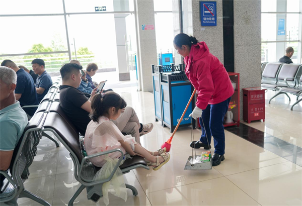 從游客接待中心到景區(qū)入口,從乘車點(diǎn)到電梯口,隨處可見(jiàn)工作人員熱情指引。他們主動(dòng)協(xié)助老人孩子上下車、幫忙安置行李,耐心解答各種問(wèn)題,讓每一位游客都能感受到 “家人般” 的關(guān)懷。