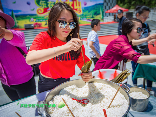 端午節(jié)怎么少了吃粽子、包粽子。今年武隆景區(qū)將開展“粽夏嘉年華”端午主題趣味民俗活動,游客可免費參與粽王爭霸賽,與高手比拼包粽手速,創(chuàng)意造型粽還能C位出道;挑戰(zhàn)粽橫四海?足夢前行蒙眼踏步,在游船搖晃間考驗平衡感,解鎖“穩(wěn)如泰山”成就;偶遇趣味問答,答對即可抱走端午限定好禮!更有露天詩會、趣味問答等活動,贏取端午限定獎品,讓旅程更添趣味。