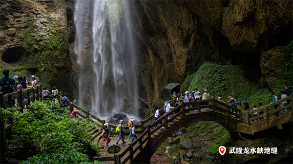 峽谷幽深如時光隧道,地下暗河奔涌千年,飛瀑從百米崖頂傾瀉,徒步棧道蜿蜒于絕壁之間,苔痕斑駁的巖壁訴說著地殼運動的史詩,這里是“可探聽地球心跳”的秘境。