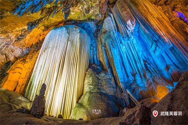 億萬年時光雕琢的地下宮殿,鐘乳石林立,石幔垂掛,仿佛踏入了一個光怪陸離的奇幻世界。洞內(nèi)的“巨幕飛瀑”“海底龍宮”等奇觀,色彩斑斕,形態(tài)各異,隨手一拍便是震撼人心的自然杰作。