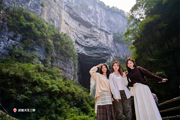 打卡《變形金剛4》《滿城盡帶黃金甲》的取景地天生三橋 ,感受大自然用鬼斧神工雕琢出的天坑奇景。對(duì)著青龍橋下的鯉魚躍龍門景觀,許下青春的心愿,躍過人生的龍門,順利抵達(dá)理想的彼岸。