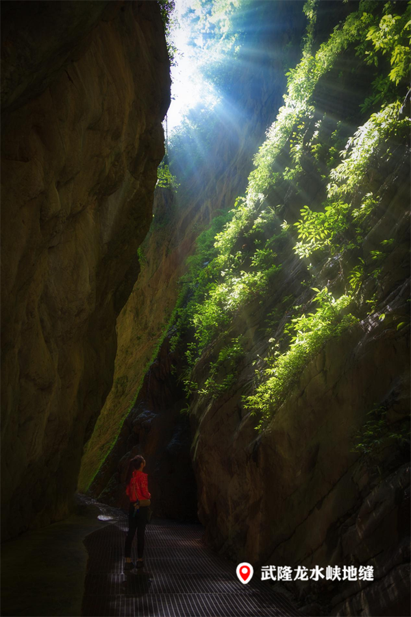 走進(jìn)龍水峽地縫,就仿佛開啟了一場(chǎng)地心探險(xiǎn)之旅。陽(yáng)光透過縫隙灑在身上時(shí),會(huì)讓你感受到一種全新的力量,帶著對(duì)未來的探索之心,勇敢前行。并且不用去百丈漈,在銀河飛瀑下就能實(shí)現(xiàn)生命力美照。