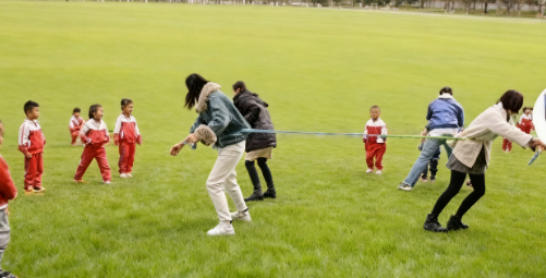 一圈到底:5個家庭組隊手拉手,將圓環(huán)從第一人傳到最后一人(手不能松),在歡聲笑語中感受團隊協(xié)作的快樂。