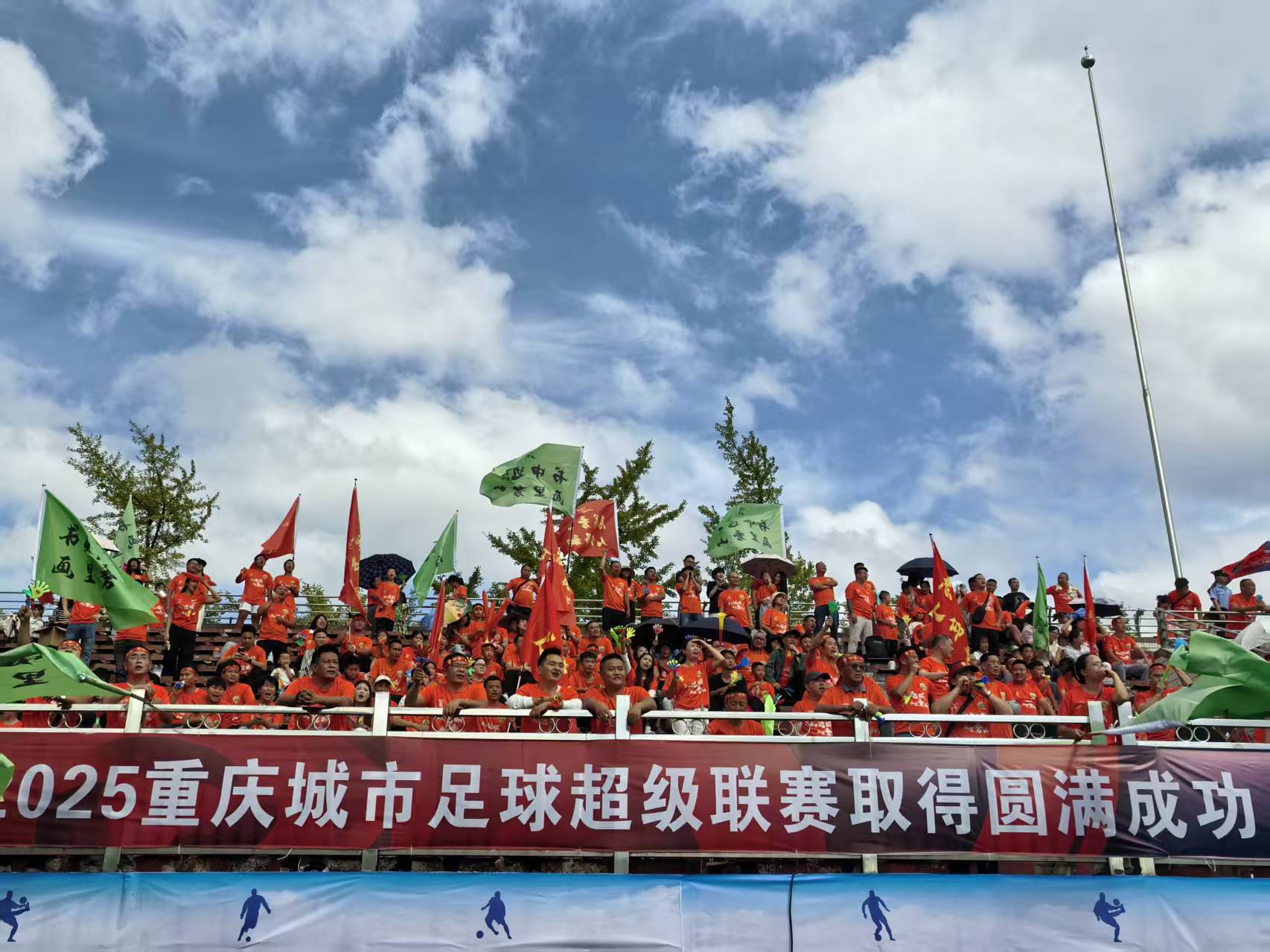 終場哨聲落下,賽場歡呼聲仍如浪潮般洶涌。觀眾揮旗擊掌,球員走向看臺致意,掌聲、歡呼與致謝聲交織,在仙女山回蕩。這一刻,賽場化作歡樂海洋,為這場對決畫下難忘句號。
