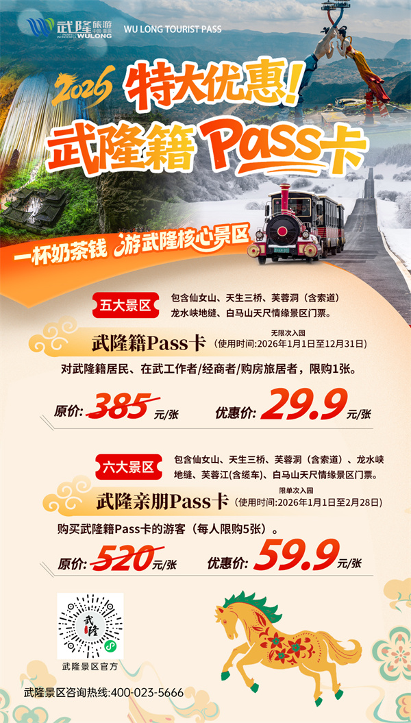 計劃前往武隆游玩的游客們請注意啦!您可以通過搜索“武隆景區(qū)官方平臺”微信或支付寶小程序,依據(jù)自身實際需求購買Pass卡。